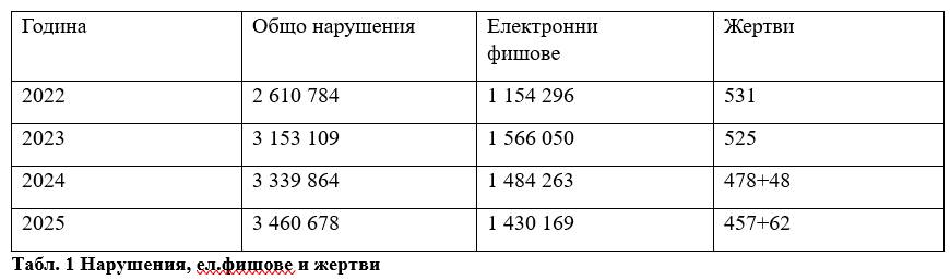 •От 2023 г. констатираните нарушения са над 3 милиона, от които около 1,4 милиона са електронни фишове за превишена скорост.