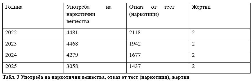 •През 2024 и 2025 г. е отчетено намаление на жертвите с 9% и 5%, без видима промяна в броя на установените нарушения.